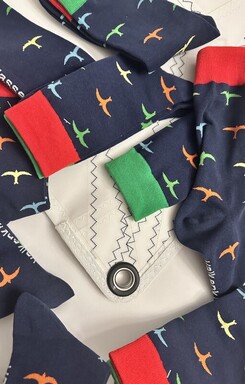 Leuke valkensokken, unieke combinatie met groen en rode boord.